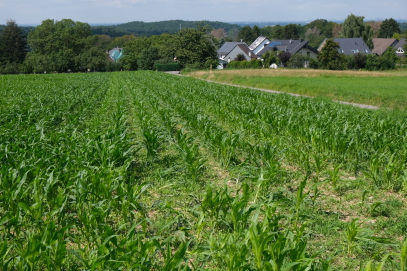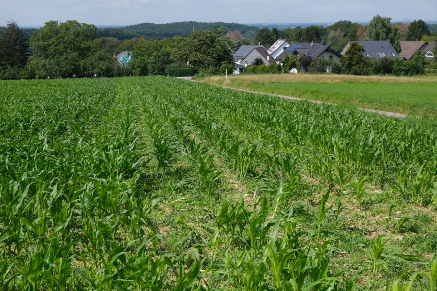 Bergab beackertes Feld am Hülstrung (Bild vom 01.08.2021)