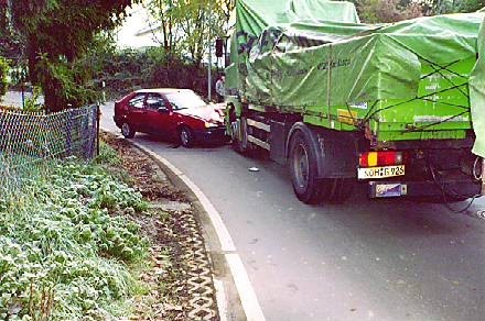 Und jetzt stellen Sie sich vor, es ein eher unerfahrener/unsicherer Fahrer, der deutlich schneller fährt, es ist dunkel, es regnet etwas, es kommt ein etwas breiteres Fahrzeug entgegen und es gibt noch Fußgänger. Dann haben wir das womit es unsere Kinder morgens auf ihrem Schulweg zu tun haben.